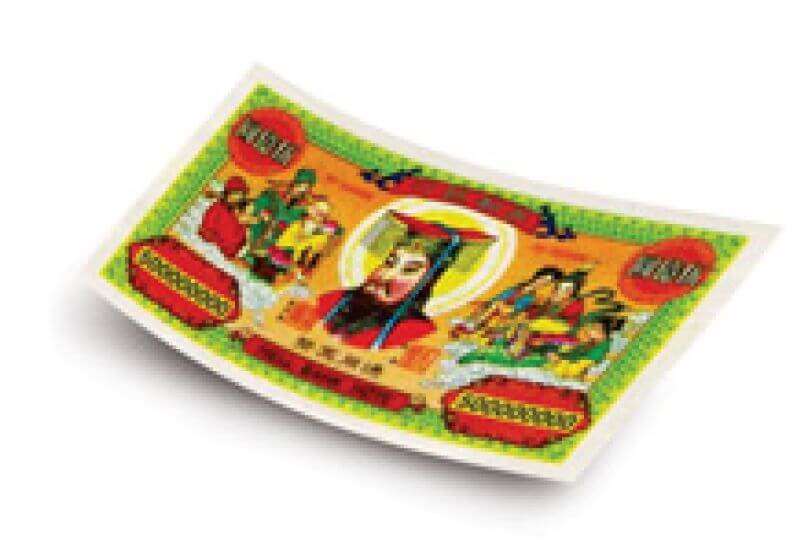 Papierowe pieniądze i modele pali się obok grobu. Robi się to z