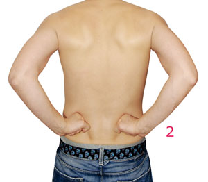 Stań w lekkim rozkroku i rozluźnij ciało. Unieś ręce za plecami na wysokości nerek. Grzbietami obu dłoni energicznie masuj je z dołu do góry tak długo, aż się rozgrzeją – zazwyczaj trwa to około 2–3 min. Potem bardzo lekko oklepuj nerki pięściami.